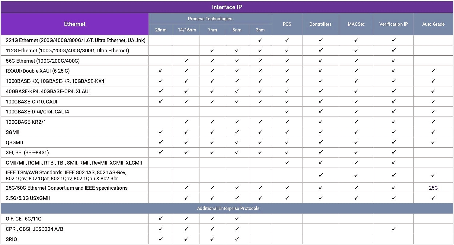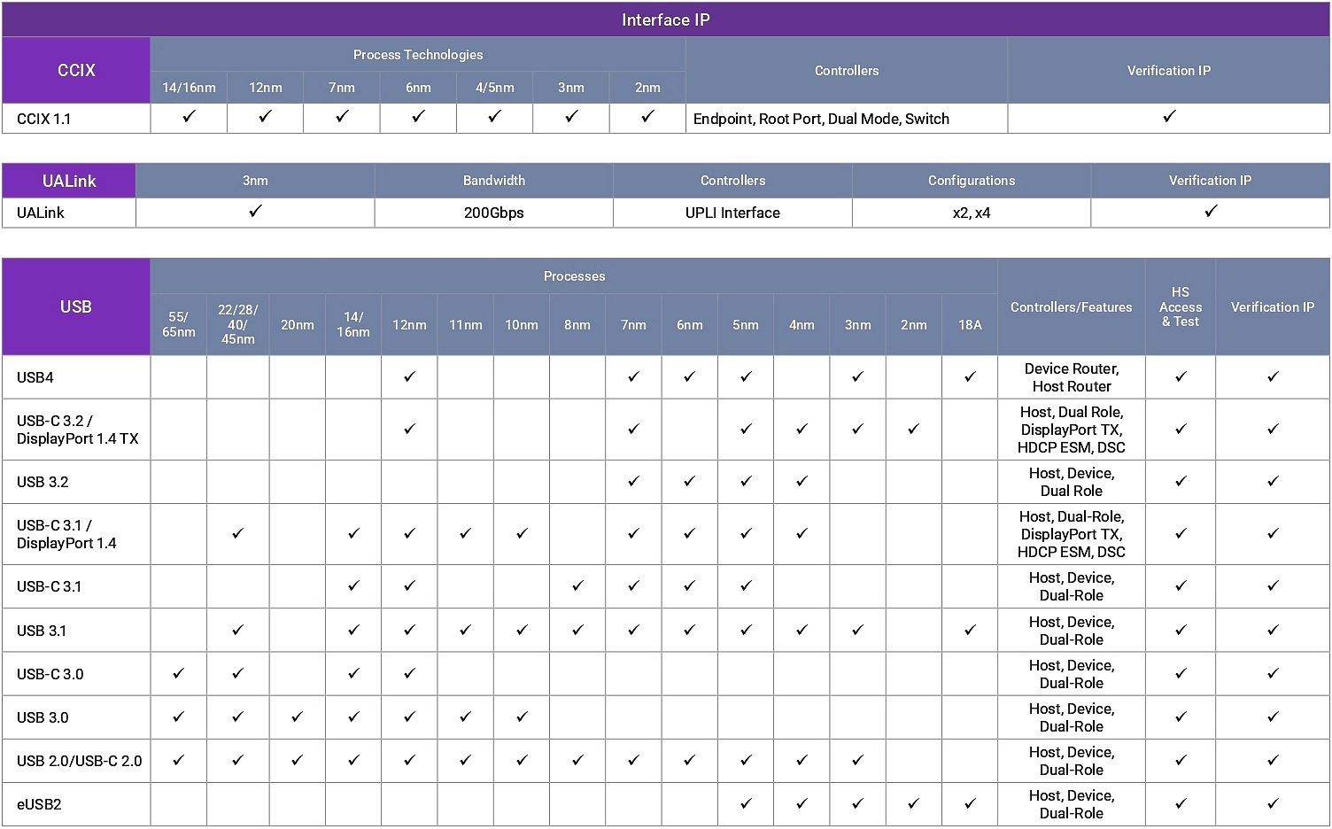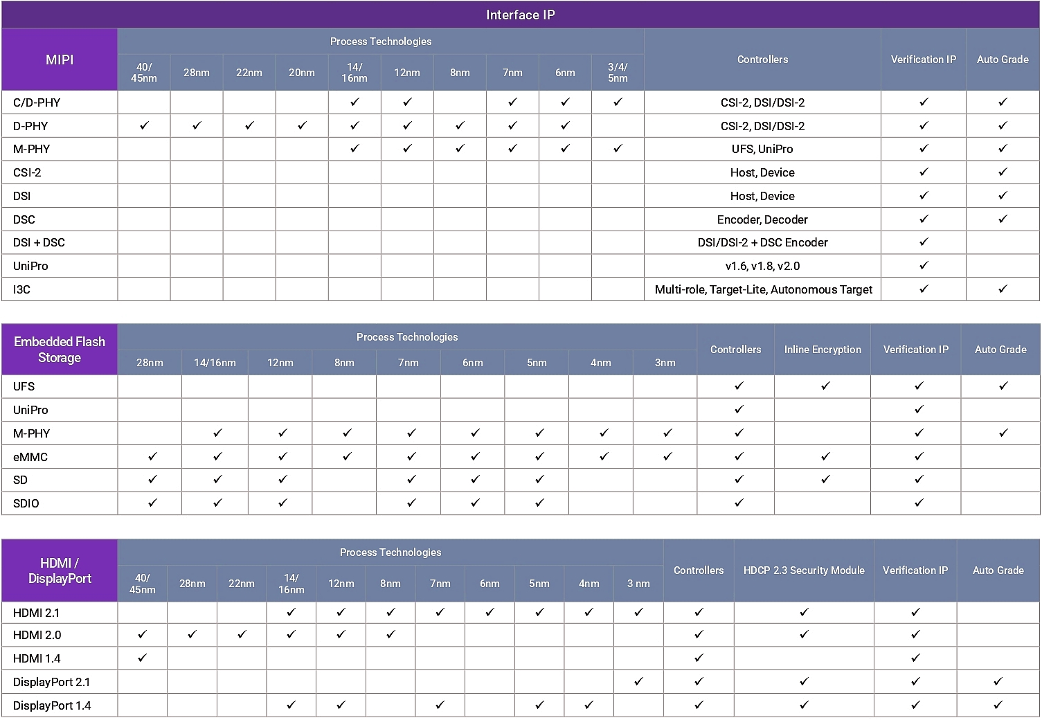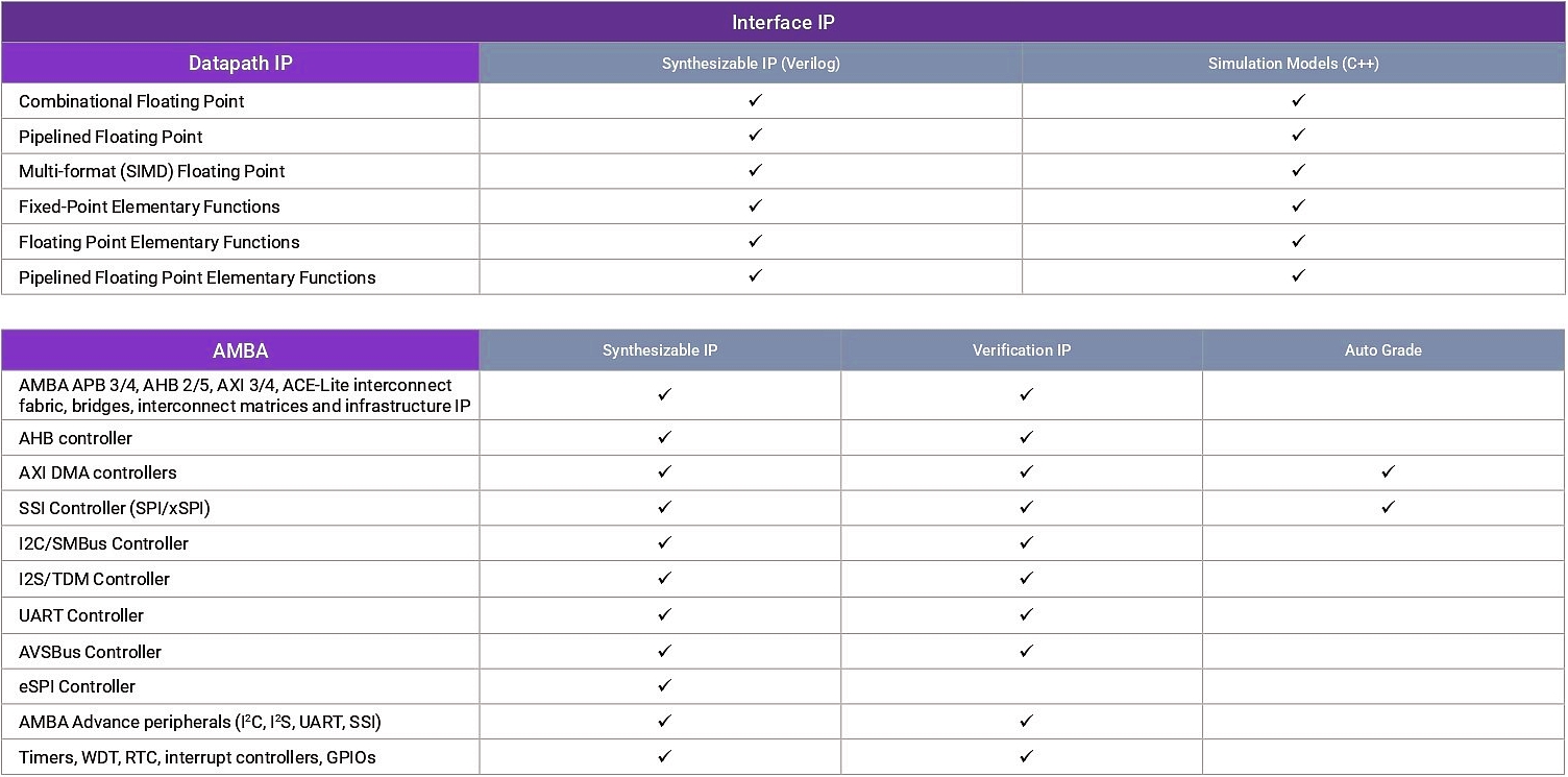 ARM, ANDES, Cortex, WDC, UART, JPEG, H.264, 10/100/1000 MAC, USB2.0/ 3.0/3.1 Controller, DDR2/3/4, 8051, 6502, 16-bit MCU, 32-bit MCU, Others